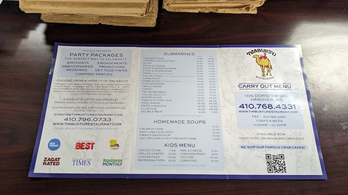Timbuktu crab cake broiled, a fried fillet of flounder and three jumbo fried shrimp.