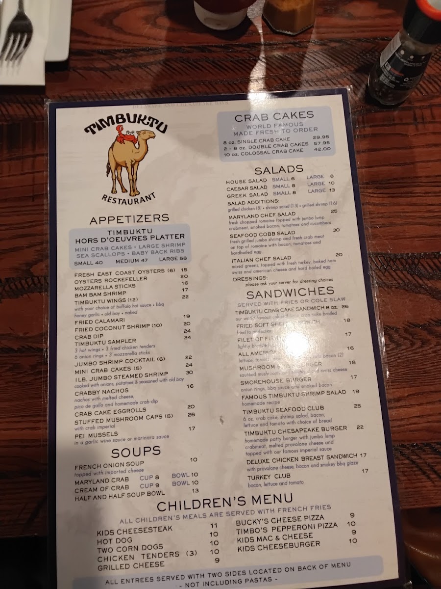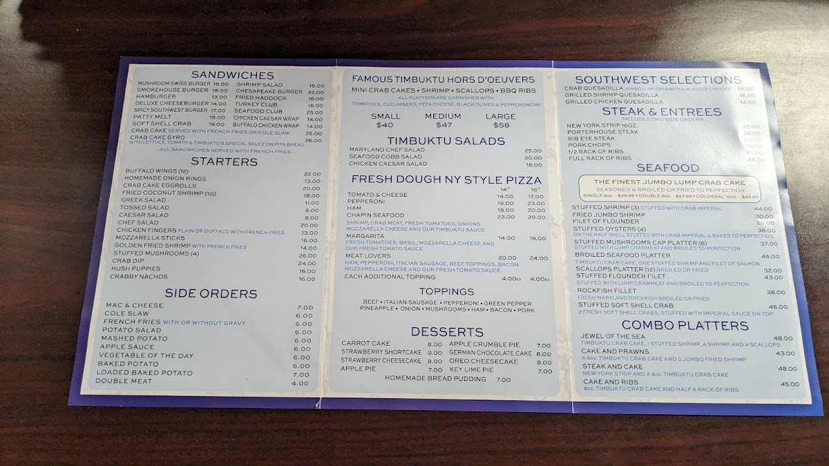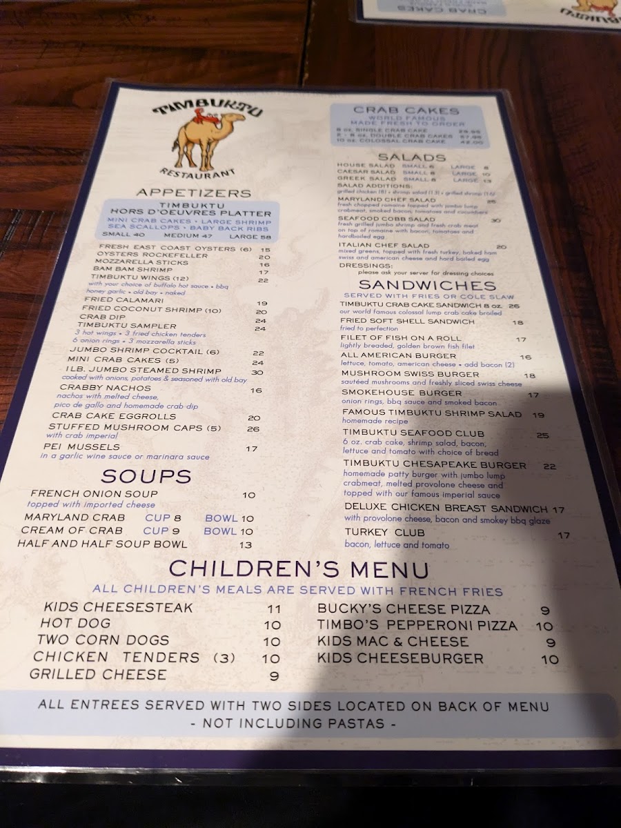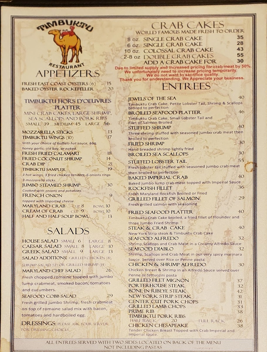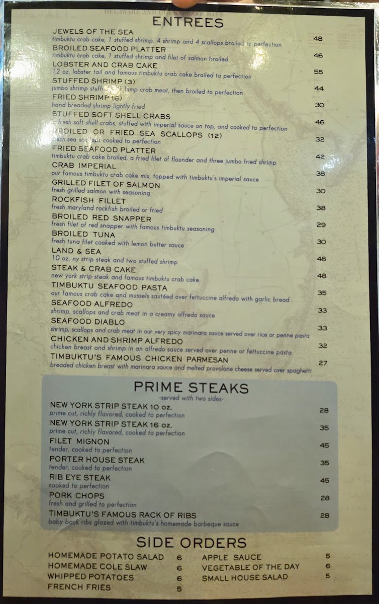 Timbuktu crab cake, petite lobster tail, shrimp & scallops broiled to perfection.